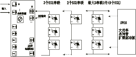 閉合時(shí),最大輸出功率被固定在40%內(nèi)(內(nèi)部輔助功率限制調(diào)定值失效)。用途:功率限制及平衡起動(dòng)。用于硅碳棒大功率加熱器的冷起動(dòng)(僅能限制功率,不能限制電流)或避免多臺(tái)設(shè)備同時(shí)投切造成的動(dòng)力不平衡??赏ㄟ^(guò)①手動(dòng)接入單刀開(kāi)關(guān)限制40%.功率,然后分時(shí)撤消。②可設(shè)島電儀表下限不同的報(bào)警點(diǎn),實(shí)現(xiàn)分時(shí)起動(dòng)。